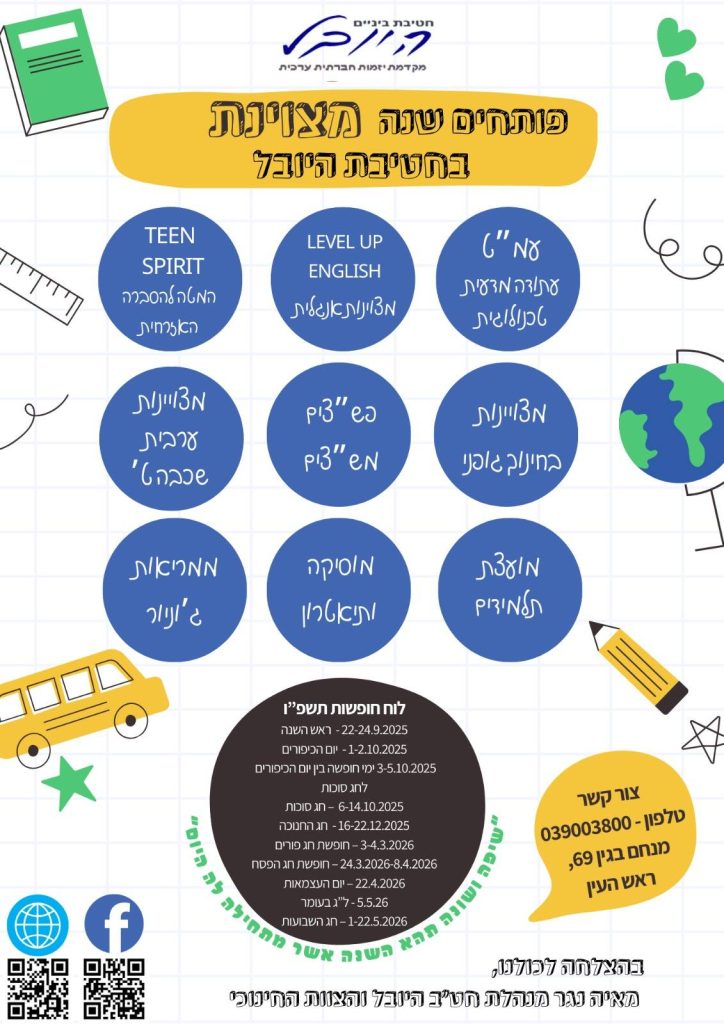 בפתחה של שנה חדשה אנו מאחלים לכל באי חטיבת היובל – תלמידים, הורים ואנשי צוות – שנה טובה ומבורכת. שנה של אור, שמחה, בריאות, אושר והגשמת חלומות