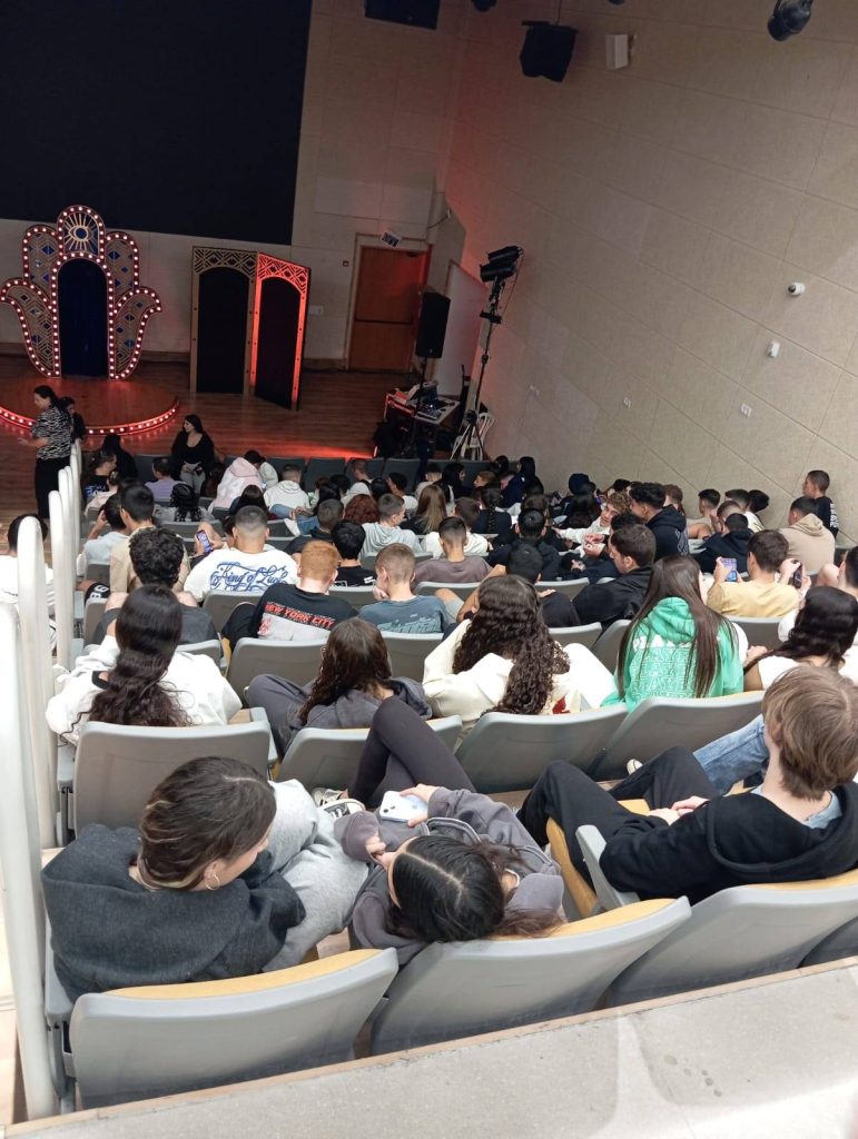 תלמידי שכבת ט' והוריהם צפו בהצגה מופלאה ומרגשת " בלי עין הרע" המגוללת את סיפור חייו המופלא של השחקן אסף בן שמעון, התמודדותו מעוררת ההשראה עם אובדן הראייה ומסעו להגשמת חלום הבמה והתיאטרון.