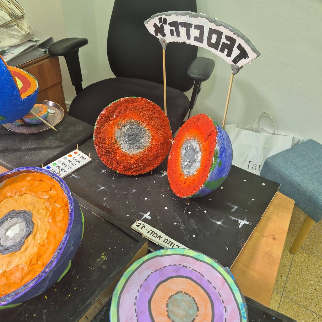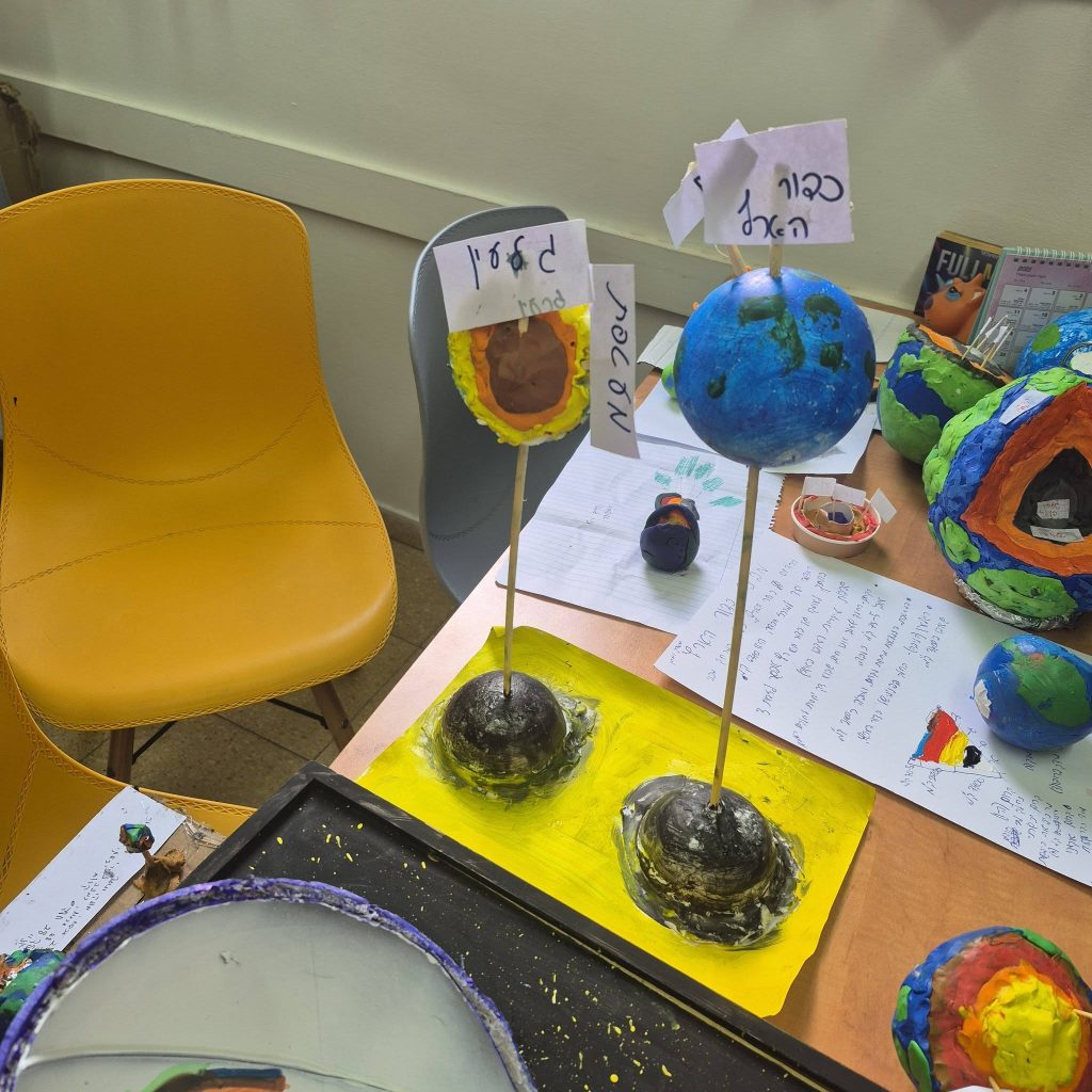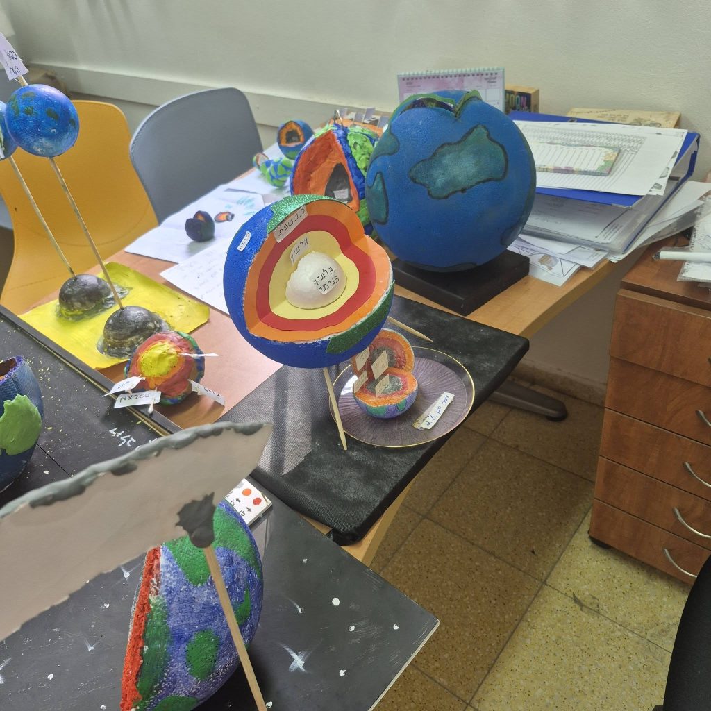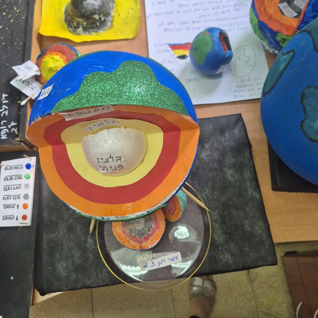 בשיעורי הגיאוגרפיה התלמידים עסקו במבנה הפנימי של כדור הארץ. במסגרת המשימה התלמידים התבקשו להכין דגמים מקבילים שמדגימים בצורה יצירתית וברורה מה מתרחש מתחת לשכבת האדמה – מהקרום, דרך המעטפת ועד לגלעין. הדגמים שהוגשו היו מרשימים, צבעוניים והורגשה הלמידה החוויתית.