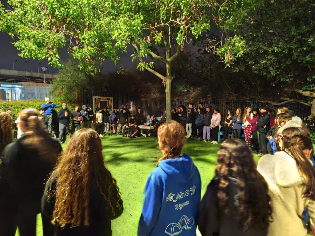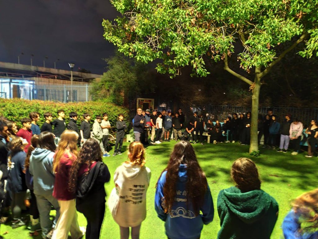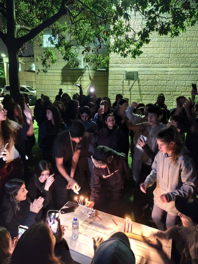 הדלקת נר שלישי של חנוכה עם קהילת חטיבת ביניים היובל משצים ופשצים מרחבי העיר – ב"פינה של יותם" שנבנתה בחצר בית הספר לזכרו של רס"ן יותם פלד גיבור ישראל שנפל בי"ג באב התשפ"ד 17 באוגוסט 2024 בקרב במרכז רצועת עזה. בן 34 בנופלו.